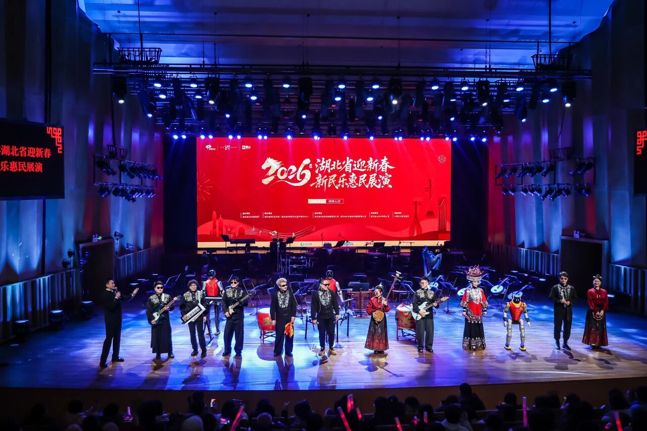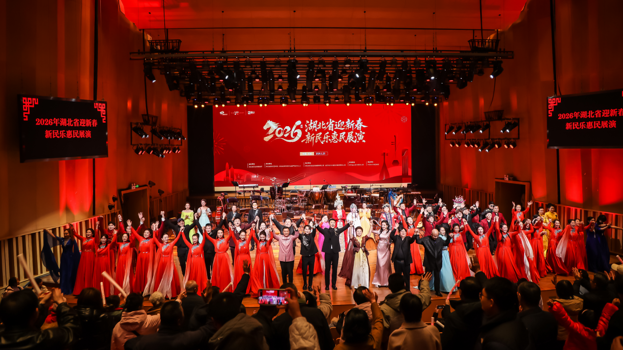 1月23日晚,2026年湖北省迎新春新民乐惠民展演温情上演,以艺术暖流驱散岁末寒意。中国东方演艺集团党委副书记、纪委书记尹寿松,湖北省文化和旅游厅党组成员、副厅长余萍,中南民族大学党委副书记、校长刘义,湖北省演艺集团党委副书记、总经理毕华等嘉宾出席活动。