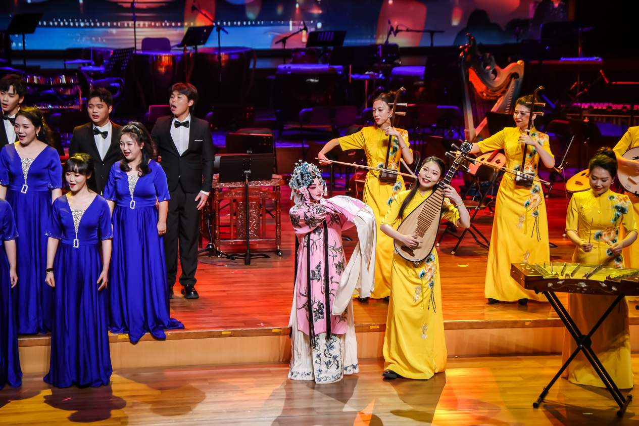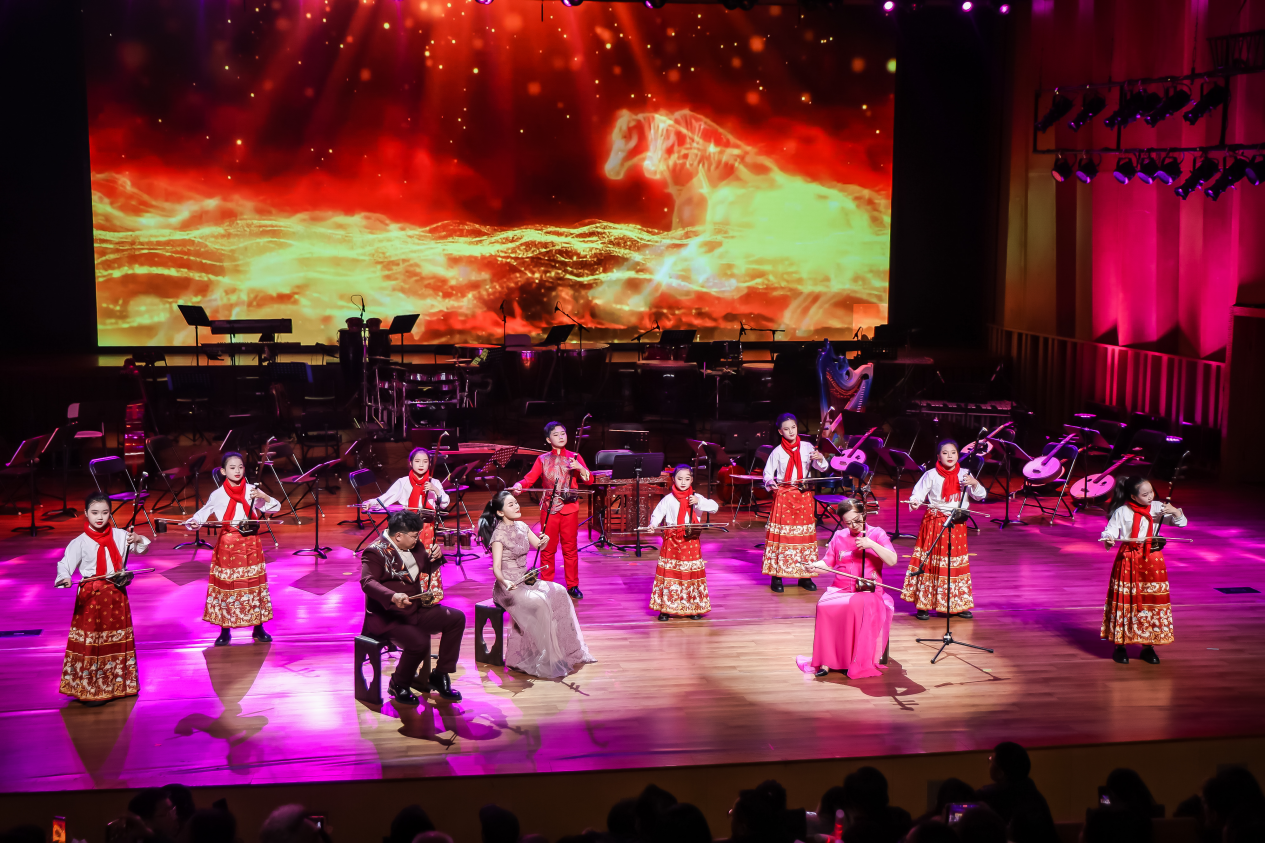 演出还特别设置了湖北民歌专题,《龙船调》《幸福歌》等经典旋律唤起观众深深共鸣。二胡齐奏《洪湖主题随想》《赛马》由老中青三代演奏家同台呈现,琴弦间流淌的是技艺的传承,更是文化的延续。