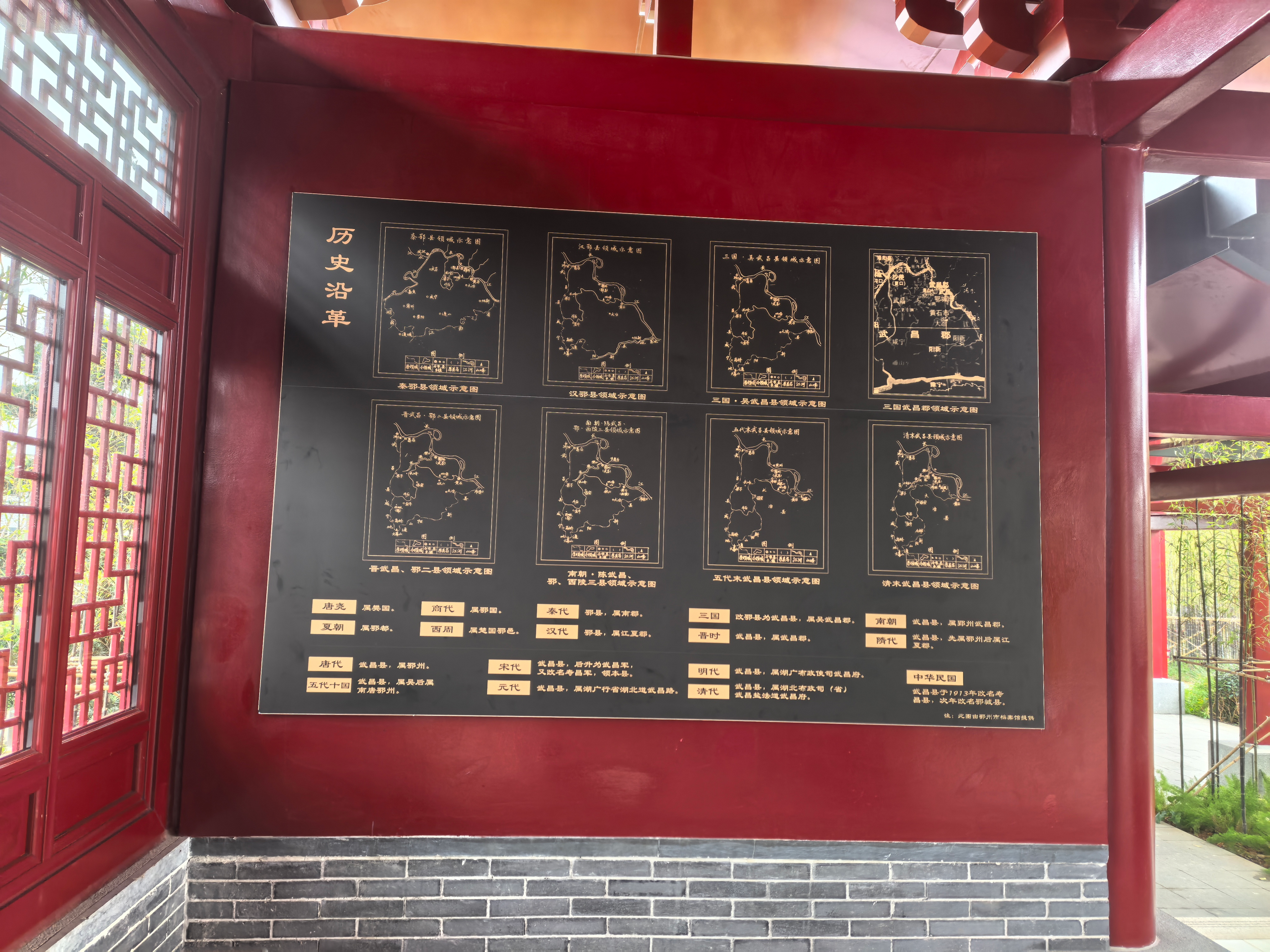 在鄂州园山门入口左侧,是史志研究中心精心编制的鄂州历史沿革图。该图以清晰的脉络、简洁的标注,系统梳理了鄂州从帝尧时期樊国、夏时鄂都,到殷商鄂国、三国吴都,再到近现代变迁的完整历程,全面展现了鄂州“湖北之根、武昌之源”的深厚历史积淀,让游客驻足鄂州园便能直观了解这座城市的千年变迁轨迹,感受其独特的历史地位与文化基因。